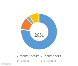 冷水机组用涡轮压缩机根据制冷能力,分为200RT-1000RT、100RT-200RT、<100RT等。2024年,200RT-1000RT是最主要的需求来源,占据大约75.7%的收入份额。