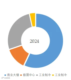 冷水机组用涡轮压缩机广泛应用于商业大楼、数据中心、工业制冷等。2024年,商业大楼是最主要的需求来源,占据大约57.0%的收入份额。