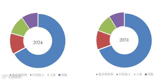 就产品应用而言,目前食品和饮料是最主要的需求来源,占据大约67.04%的份额。
