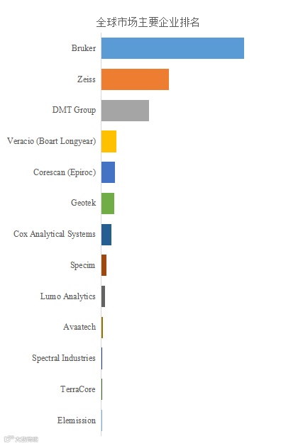 全球范围内,岩芯元素分析仪主要生产商包括Bruker、Zeiss、DMT Group、Veracio (Boart Longyear)、Corescan (Epiroc)等,其中前五大厂商占有大约84.49%的市场份额。
