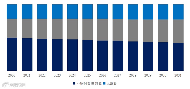 就产品类型而言,目前不锈钢管是最主要的细分产品,占据大约47.5%的份额。