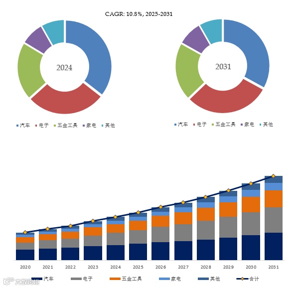 就产品应用而言,目前汽车是最主要的需求来源,占据大约33.3%的份额。