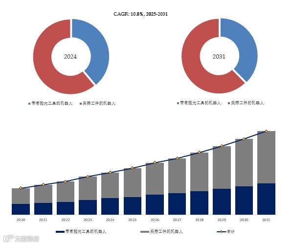 图00003. 抛光研磨机器人,全球市场规模,按产品类型细分,夹持工件的机器人产品处于主导地位