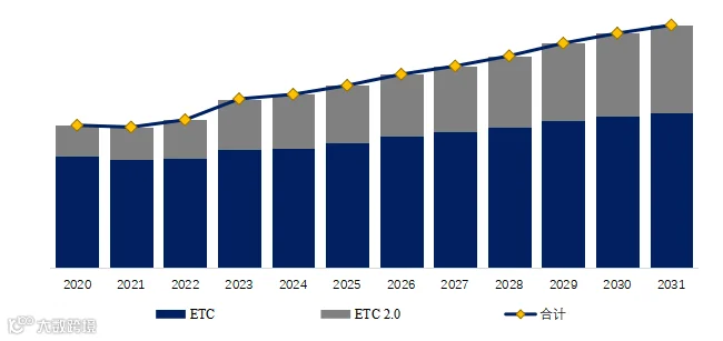 从应用端看,ETC产品可以分为ETC1.0和ETC2.0,ETC2.0以其丰富的驾驶协助功能和超大覆盖范围的优势,近年来迎来大规模的更换和新增需求,根据我们的数据,2024年自动ETC设备2.0装车量突破290万个,市场份额超30%,预计到2031年,ETC2.0装车量突破470万个。