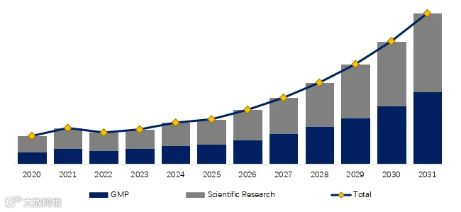 就产品类型而言,目前GMP是最主要的细分产品,占据大约44.6%的份额。