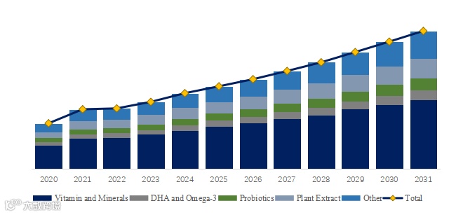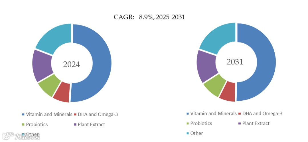 就产品应用而言,目前Vitamin and Minerals是最主要的需求来源,占据大约51.1%的份额。