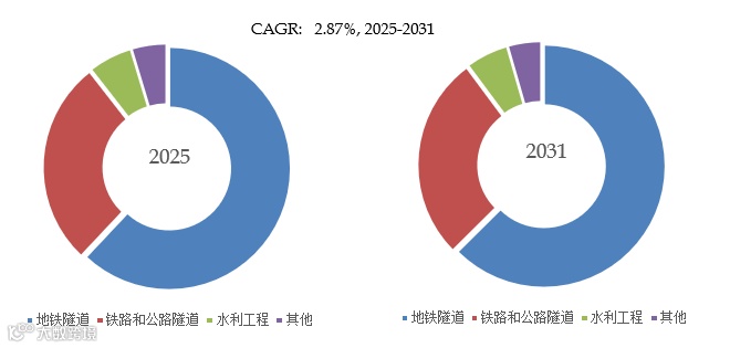 图. 盾构衬砌管片模具,全球市场规模,按应用细分,地铁隧道是最大的下游市场,占有61.49%份额。