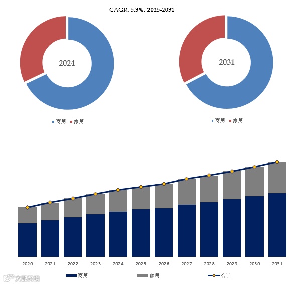 就产品应用而言,目前商用是最主要的需求来源,占据大约67.9%的份额。