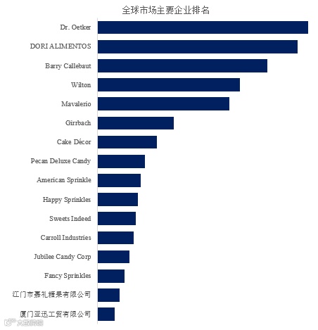 根据路亿市场策略(LP Information)头部企业研究中心调研,全球范围内糖洒生产商主要包括Dr. Oetker、DORI ALIMENTOS、Barry Callebaut、Wilton、Mavalerio、Girrbach、Cake Décor、Pecan Deluxe Candy、American Sprinkle、Happy Sprinkles等。2024年,全球前十强厂商占有大约47.0%的市场份额。