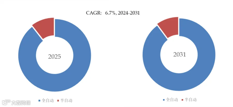 就产品类型而言,目前全自动是最主要的细分产品,占据大约89.5%的份额。