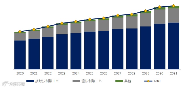 就产品应用而言,目前接触法制酸工艺是最主要的需求来源,占据大约76.0%的份额。