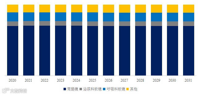 就产品类型而言,目前胃肠镜是最主要的细分产品,占据大约70.3%的份额。