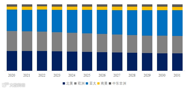 图. 全球内窥镜规模,主要销售地区份额(按销售额)