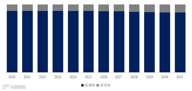 图. 胰岛素注射针头,全球市场规模,按产品类型细分,标准针处于主导地位