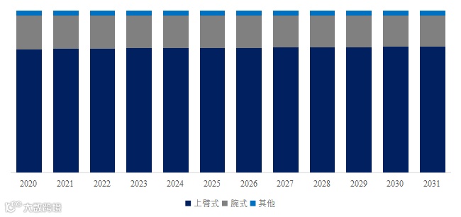 就产品类型而言,目前上臂式是最主要的细分产品,占据大约76.9%的份额。