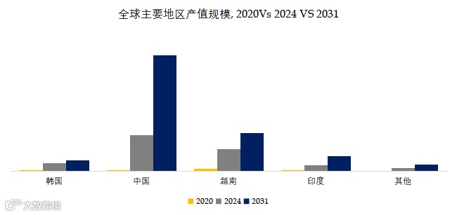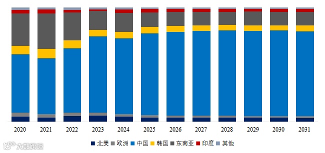 图. 全球折叠屏手机铰链规模,主要生产地区份额(按产值)