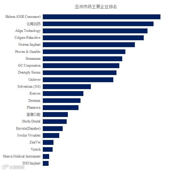 根据路亿市场策略(LP Information)头部企业研究中心调研,亚洲范围内牙科生产商主要包括Haleon (GSK Consumer)、云南白药、Align Technology、Colgate-Palmolive、Osstem Implant、Procter & Gamble、Straumann、GC Corporation、Dentsply Sirona、Unilever等。2024年,亚洲前十强厂商占有大约28.0%的市场份额。