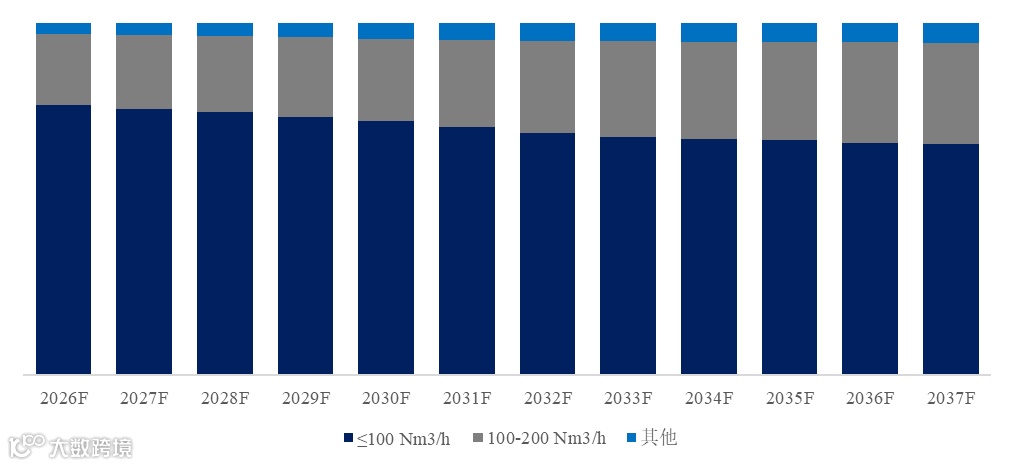 就产品类型而言,≤100 Nm3/h是最主要的细分产品,占据大约72.3%的份额。
