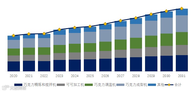 就产品类型而言,目前巧克力精炼和搅拌机是最主要的细分产品,占据大约27.5%的份额。