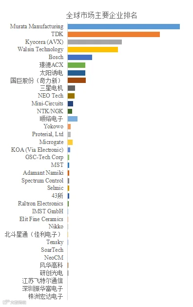 生产层面,目前日本是全球最大的LTCC生产地区,占有大约54%的市场份额,之后是中国台湾地区,占有大约25.5%的市场份额。目前全球市场,基本由日本、欧洲、韩国和中国台湾地区厂商主导,全球LTCC头部厂商主要包括村田、京瓷、TDK、太阳诱电、璟德、华新科技、国巨股份(奇力新)和Mini-Circuits等,前四大厂商占有全球超过65%的市场份额。下游应用,目前消费电子及通信领域(如智能手机、基站等)是最大的应用市场,占有大约56%的市场份额。预计接下来几年,汽车领域也将扮演愈加重要的角色。