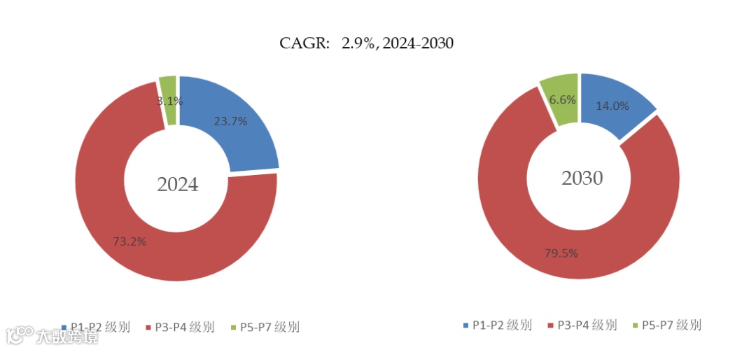 就产品类型而言,目前P3-P4 级别是最主要的细分产品,占据大约73.2%的份额。