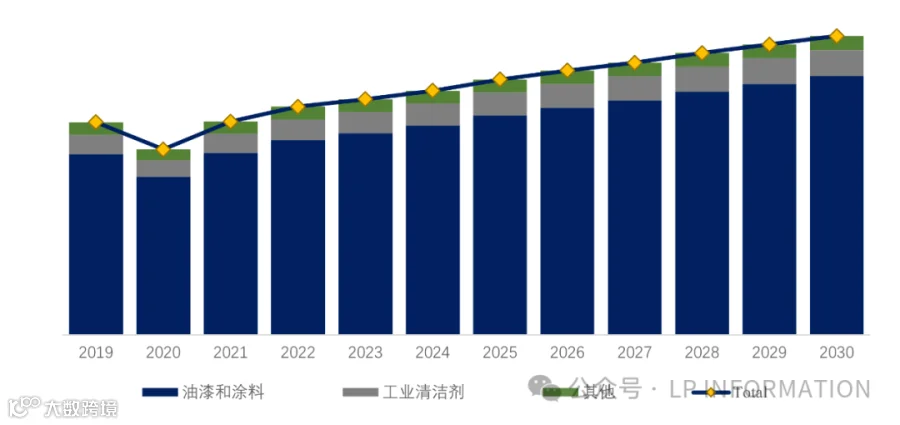 就产品应用而言,目前油漆和涂料是最主要的需求来源,占据大约85.6%的份额。
