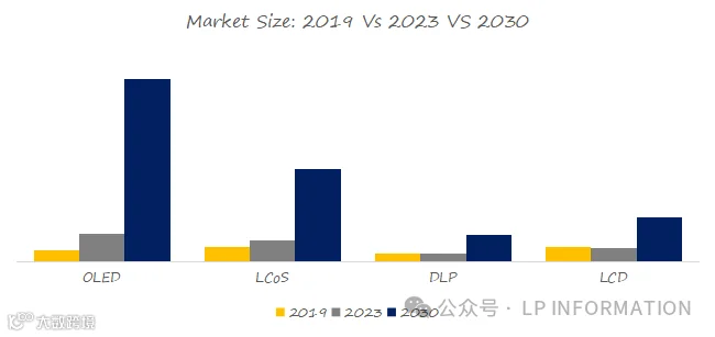 图2. 微型显示器,全球市场规模,按产品类型细分,OLED处于主导地位