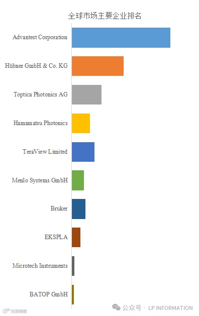 全球市场毫米波光谱仪主要厂商包括Advantest Corporation、Hübner GmbH & Co. KG、Toptica Photonics AG、Hamamatsu Photonics、TeraView Limited、Menlo Systems GmbH、Bruker、EKSPLA、Microtech Instruments、BATOP GmbH, 等,其中2024年,全球前三大厂商占有大约 %的市场份额。