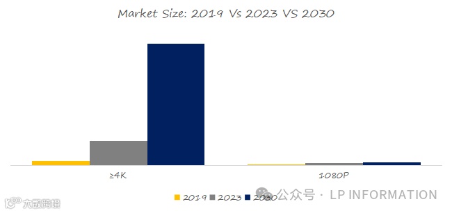 就产品类型而言,目前≥4K是最主要的细分产品,占据大约90.8%的份额。