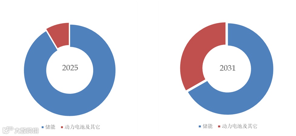 就产品应用而言,目前储能是最主要的需求来源,占据大约91.5%的份额。