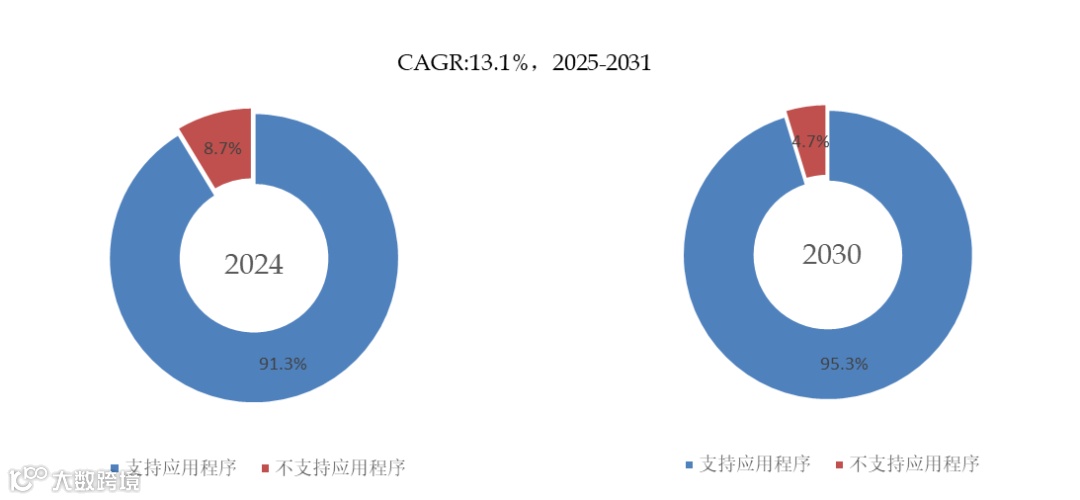 就产品类型而言,目前支持应用程序的类型是最主要的细分产品,占据大约91.3%的份额。