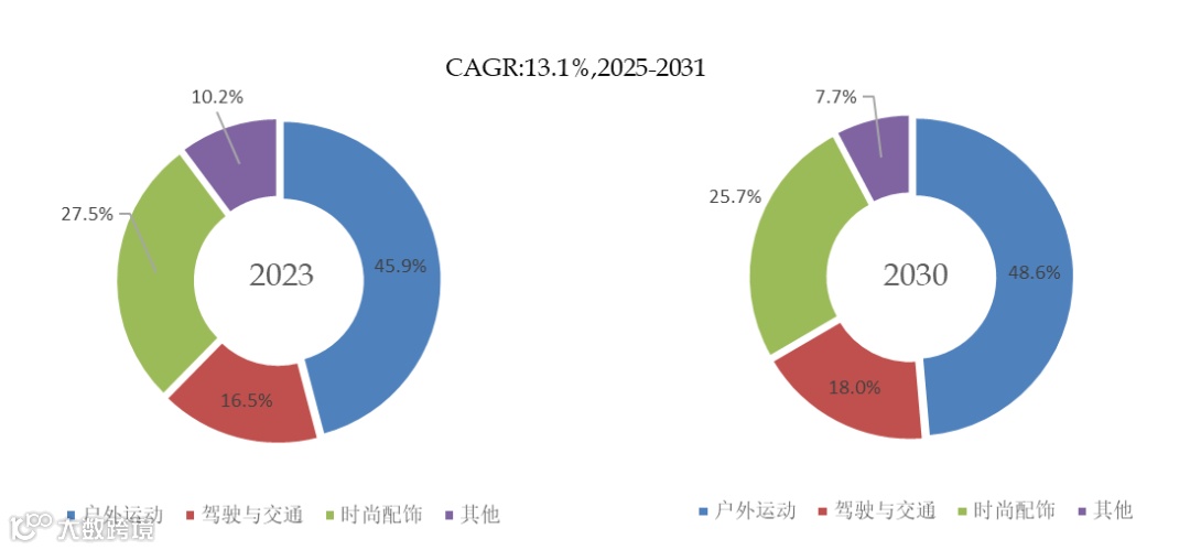 就产品应用而言,目前户外运动是最主要的需求来源,占据大约45.9%的份额。