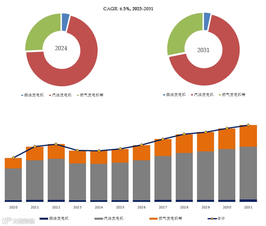 图. 便携式发电机,全球市场规模,按产品类型细分,汽油发电机产品处于主导地位