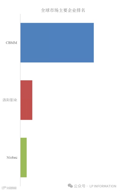 根据LP Information头部企业研究中心调研,全球范围内铌生产商主要包括CBMM、洛阳钼业等。2024年,全球前三大厂商占有大约97.0%的市场份额。
