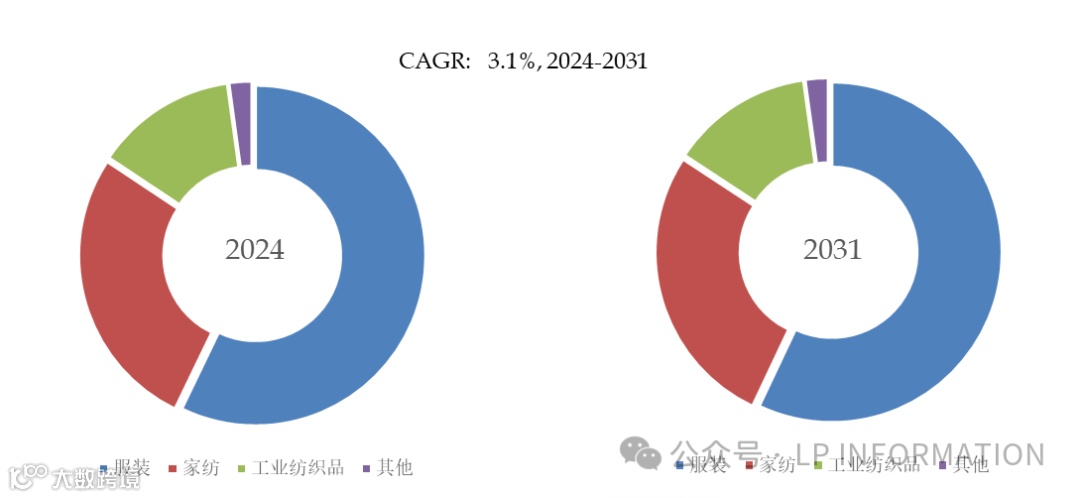 就产品应用而言,目前服装是最主要的需求来源,占据大约57.2%的份额。