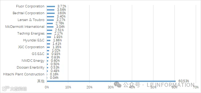 全球范围内,工厂工程服务主要生产商包括Fluor Corporation, Bechtel Corporation, CPEC(CNPC), Saipem (Eni) and Larsen & Toubro等,其中前五大厂商占有大约17%的市场份额。