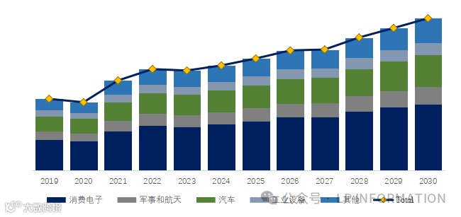就产品应用而言,目前消费电子是最主要的需求来源,占据大约43%的份额。