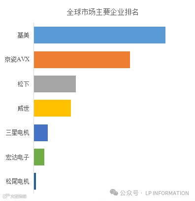 全球范围内,导电聚合物钽固体电容器主要生产商包括基美、京瓷AVX、松下和威世等,其中前三大厂商占有77%的市场份额。