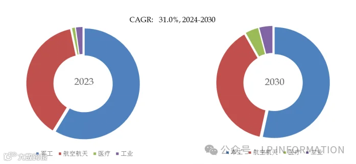 就产品类型而言,目前军工是最主要的需求来源,占据大约57.3%的份额。