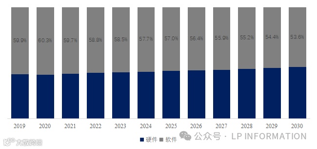 就产品类型而言,目前软件是最主要的细分产品,占据大约57.7%的份额。