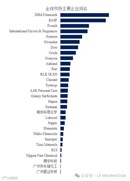如上图表/数据,摘自LP Information报告“全球化妆品原料市场研究报告2025-2030”,排名基于2023数据。目前最新数据,以本公司最新调研数据为准。