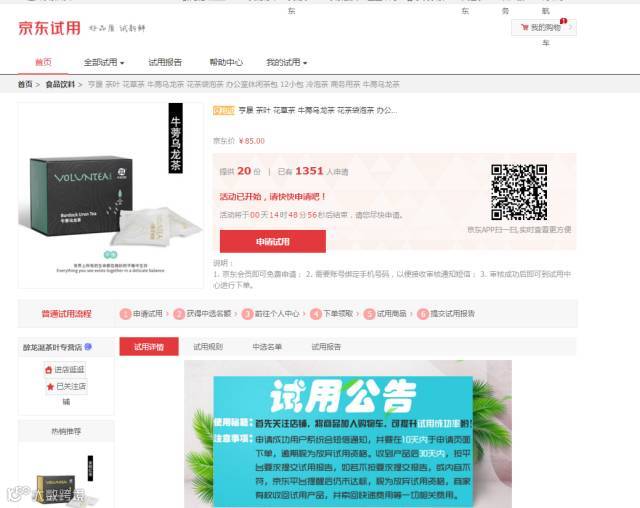 1、点击文末阅读原文,通过京东试用频道,进入试用申请页面。