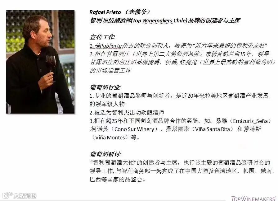 笔者四点半到达酒店,预先把酒拆箱放冰桶冻起来,五点半把场地打扫后搬桌子座椅重新摆好位置,装好投影仪,这边叫餐厅摆好餐位及酒杯,那边摆酒上桌定好品鉴顺序,智利酒庄老板兼酿酒师先生Rafael Prieto先生西装革履按时踏入餐厅,看了酒款商量后提了要求,笔者就按顺序开酒醒酒,老佛爷先生把刚收到不久的样酒逐一品鉴查验酒质,{对工作的严谨对酒质的要求对自己的产品高度负责}。