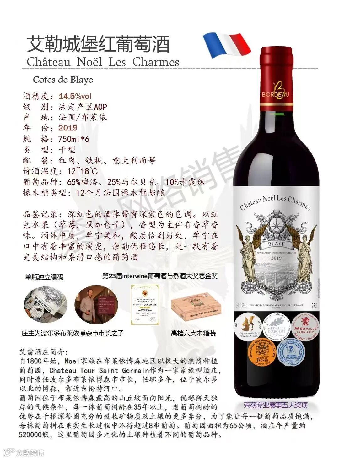 葡萄品种:65%梅洛、25%马尔贝克、10%赤霞珠