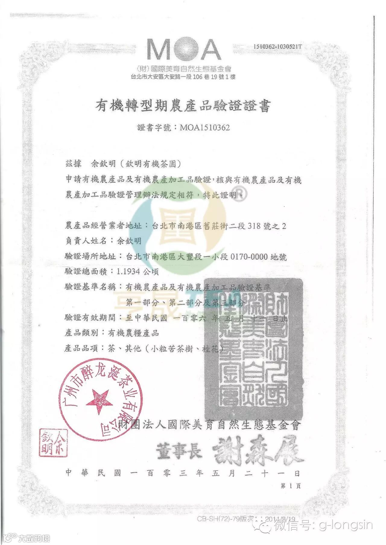 【有机茶的授权书】
