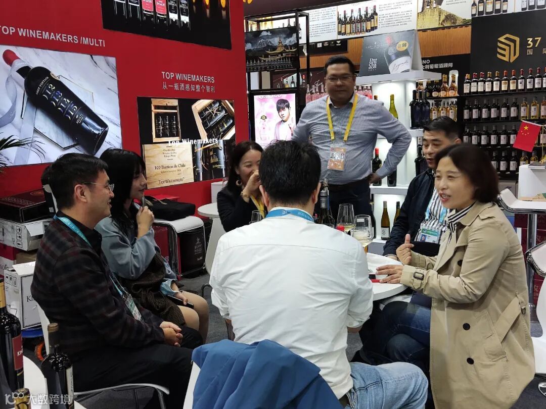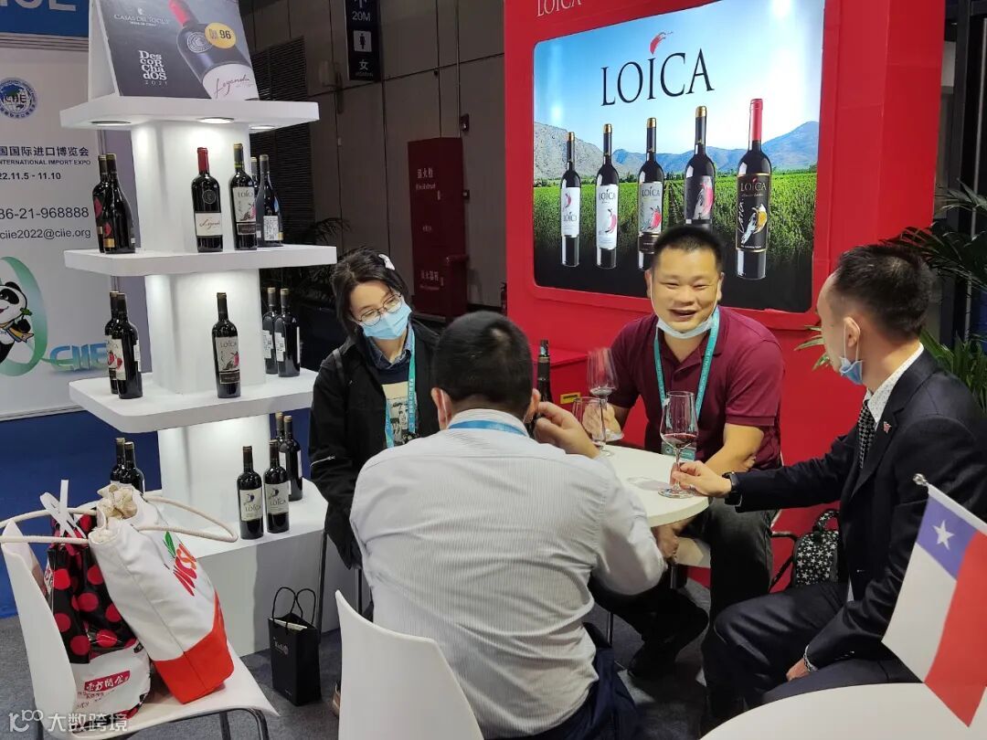 6号才正式开展,大伙一早西装革履来到展位,又开箱拿更多酒摆上,整个展位酒品琳琅满目特别醒目吸引眼球。观众也在接近中午时分越来越多,人气开始旺盛起来,大伙都勤快地向路过的观众吆喝介绍酒品,没过多久,来了几位观展的,看到是智利的葡萄酒立马走了过来嚷着要试喝试喝,我们赶紧拉凳欢迎拿酒摆桌子上,几位人士入座后自我介绍:原来来自湛江那边一家做进口商品平台的,来进博会找智利葡萄酒增加商品种类,陈太就逐一向他们介绍酒品,他们边尝边仔细听时不时讨论酒品是否适合在其平台销售,气氛热烈而融洽,在听完陈太介绍后他们对我司酒品表示很有意向,后续会跟进此单。