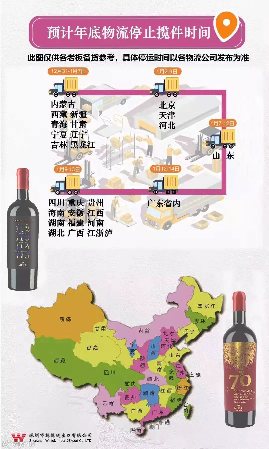 年关将至,货源充裕,各地的经销商朋友,尽管下单,但在此提醒各地酒商朋友物流时间,尽快拿货尽快发货才能尽快卖货。