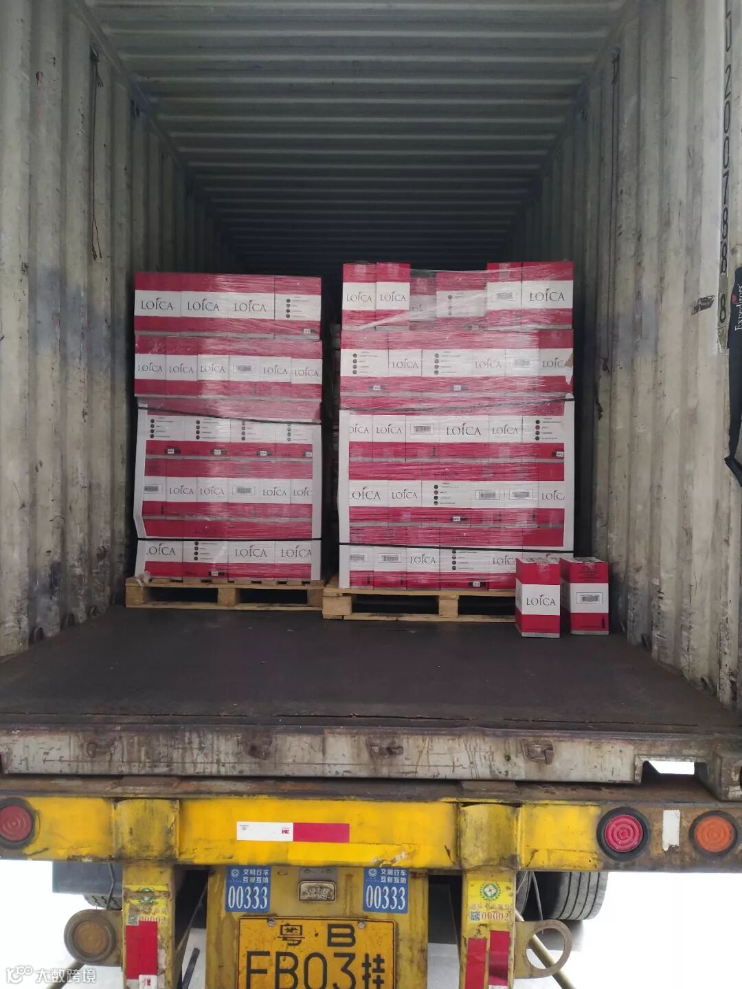 本周二中午,之前断货的洛伊卡单品梅洛干红2660箱由盐田港物流园拉到公司,公司老板身先士卒,一马当先,拆海关保险封胶圈,上扛下搬,其他同事各司其职,搬抬扛拉,不出几个小时就把20多个托盘的梅洛干红拆板堆起放好。