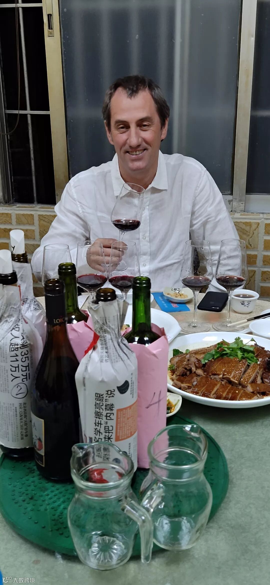 11月20号,智利TW及MULTI创始人RAFAEL PRIETO先生在飞赴华北及西北考察内地的酒庄后风尘仆仆回到深圳,第二天稍作休息,下午又来到公司,和老板及销售同事一起开会,讨论明年酒展计划及市场推广和销售问题,直到差不多七点才和同事们拿着预先开了的酒到酒楼吃饭。
