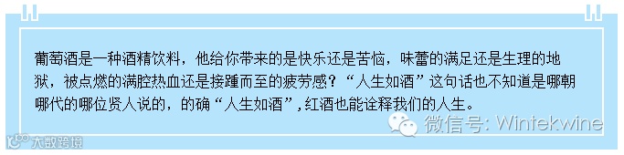 爱上红酒,将不会有终点,在色彩斑斓的旅程中去探索吧;除了坐着喝酒,还可以去了解世界,红酒永远是跟人类的历史、文化、艺术、宗教等等息息相关的。你还可以去探索那些自然风景优美、充满艺术气息的酒庄,和那些酿出此等佳酿的家伙们取经攀谈,你会发觉这个世界是如此的美丽。雷军说的一句话:永远相信美好的事情即将发生,或许在葡萄酒世界里会更适用。